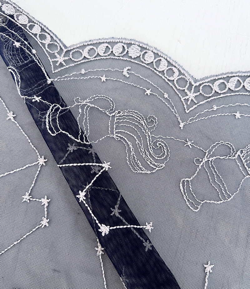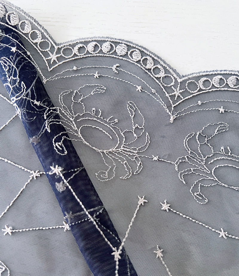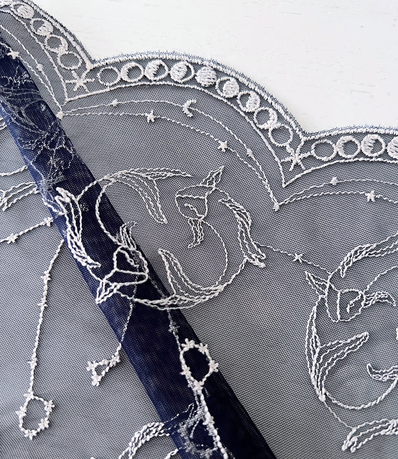 Panty tiro bajo tipo cachetero con recorte delantero de tul bordado. Hecho en mesh con forro interno de algodón 100%